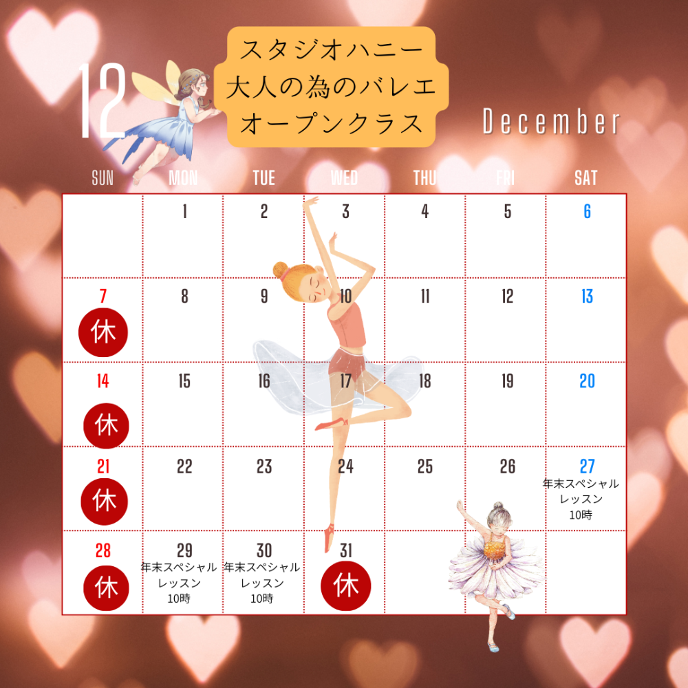 | 教室名 | スタジオハニー 大人の為のバレエオープンクラス |